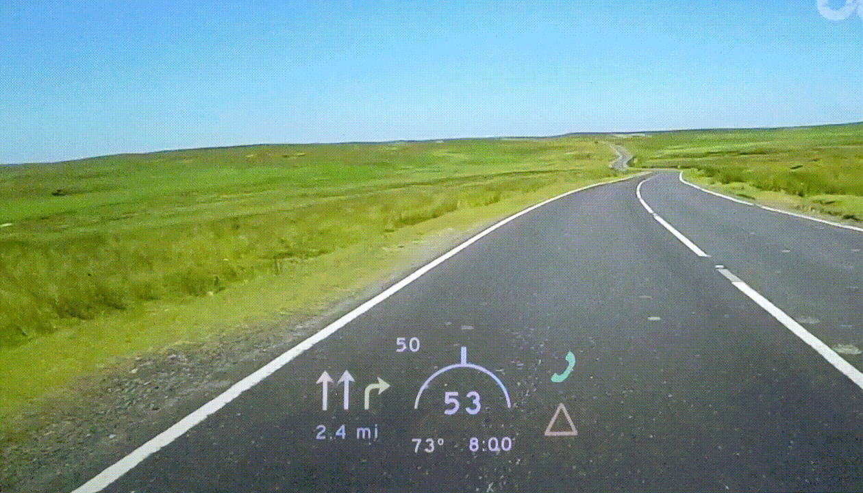 I initially positioned the HUD over a still image but realized it lacked the important quality of being in a moving car. I decided to lay the HUD over a moving video but realized the lack of projection limited the mockup from showing accurate results.